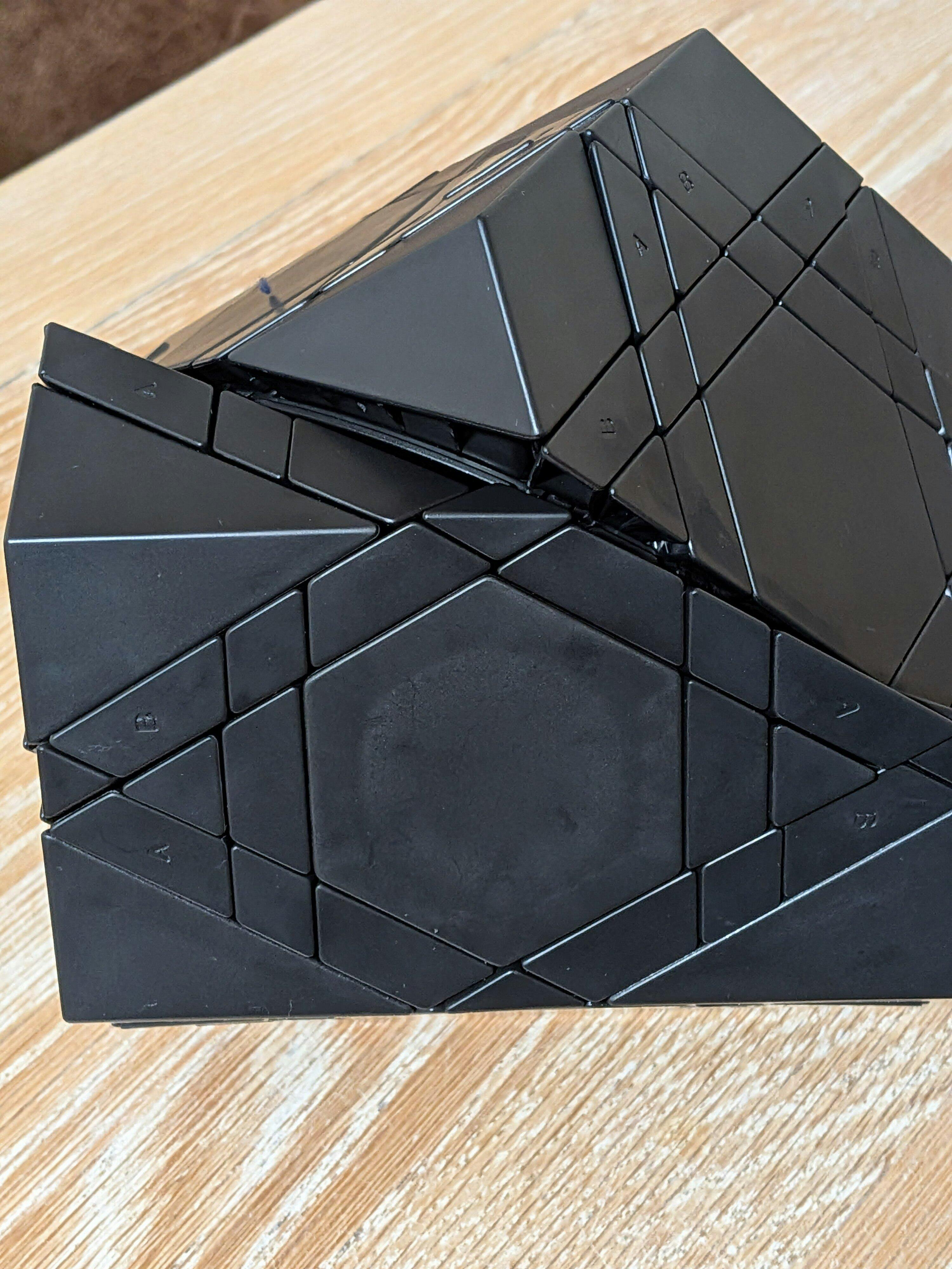 The puzzle is enourmous, but feels comfortable in your hands. Turning is great if you are capable of aligning the rails correctly. Stickers are good quality ones, so I think you wont have any problem with them. Algorithms feel a bit weird, because the cut is really deep and the mechanism is jumbling-only, so making cycles can be hard. This puzzle is a real challenge, and I'd like to see more information about people trying to solve it, so we can all learn new algorithms for it.